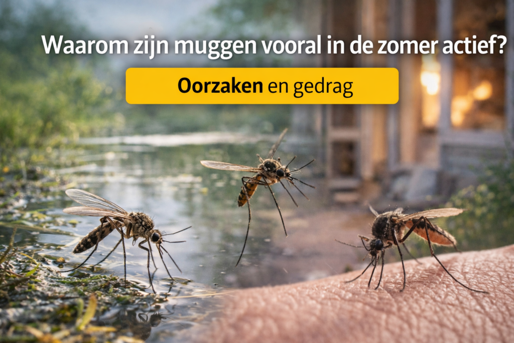 Muggen zijn vooral in de zomer actief omdat temperatuur, vocht en stilstaand water samen ideale omstandigheden vormen voor hun voortplanting, waardoor hun levenscyclus versnelt en populaties snel toenemen. Dit verklaart waarom muggen in huis en buiten vooral in warme maanden zichtbaar zijn.